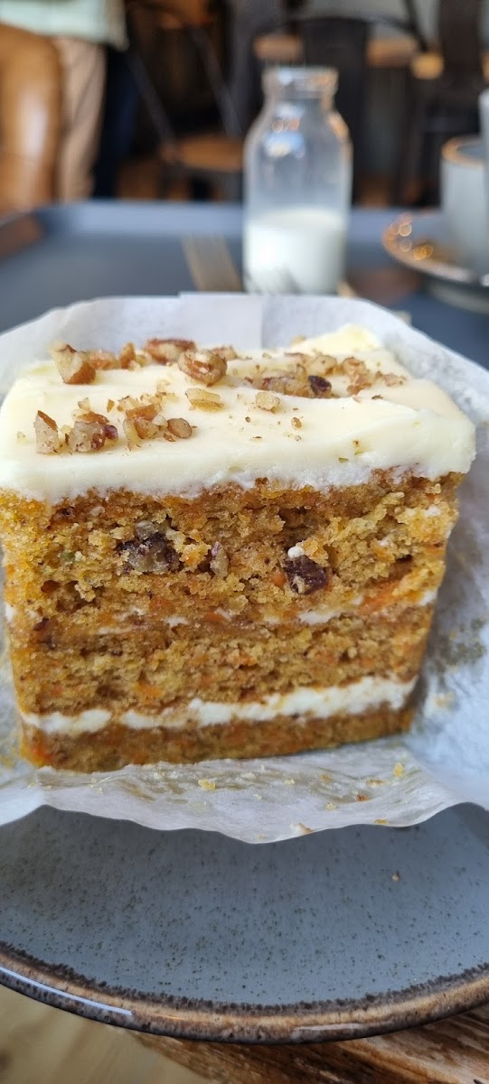 Best carrot cake I have ever had in my life. My husband enjoyed his sausage roll. Nice coffee too!